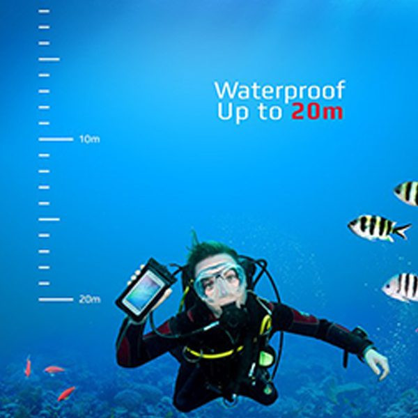 ابعاد قسمت شفاف 140x80 میلی متر قابلیت استفاده از صفحه لمسی گوشی و دوربین دارای 2 قفل پلاستیکی محکم جهت کیپ کردن در ورودی کاور دارای بند گردنی با قابلیت جدا شدن